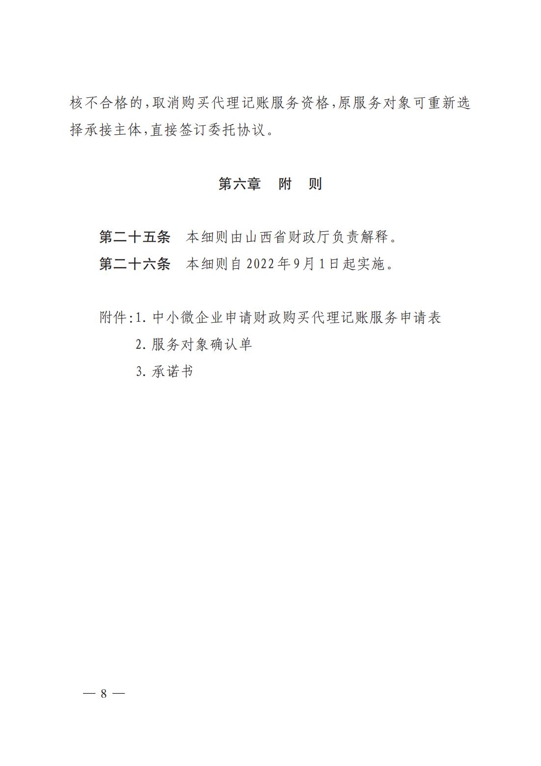 山西省財(cái)政廳為中小微企業(yè)購買代理記賬服務(wù)實(shí)施細(xì)則(試行)